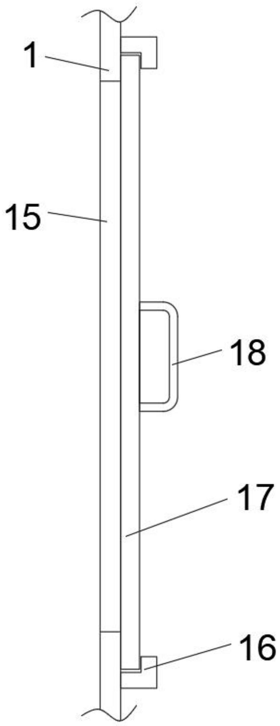 [0035]本实用新型通过观察窗15的设置,便于观察箱体1内种子的状态及数量,通过L型槽16及遮光板17的设置,能够在箱体1的外侧对遮光板17进行滑动,从而在不使用观察窗15时,利用遮光板17对观察窗15进行遮挡,以避免光线通过观察窗15照射至箱体1内。